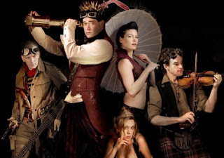 Abe, this powder monkey I knew who liked to creep around the engine rooms when he shoulda been minding the Captain's orders,  is the one who first told me about Abney Park.  His older brother had seen'em before joining up with a different crew and leaving Abe swinging in the wind.  I saw'em myself on a screen between jobs, my eyes popping from my sockets.  All I've heard were ribald shantys that have no place within hearing distance of a lady (engineering lady or not).  But 'Airship Pirates'?  'The Derelict'?  I'm all over that.