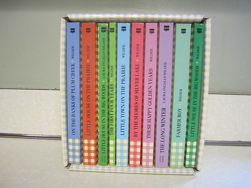 I received the above set of books from a neighbor when I was about 10years old for Christmas.  I had previously only owned the first book, Little House in Big Woods, as a used hardback my mom had gotten me from Goodwill when I was sick with chicken pox.  Its hard to describe how much I loved those books--most especially the first one.  I was a suburban girl--lived by highways and diners and shopping centers my entire life.  I hated the outdoors.