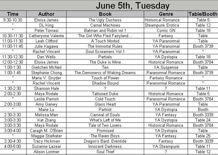 All right guys I found something out last year--a goodly amount of the folks I spoke with went into the BEA autographing schedules with little to no plan!